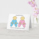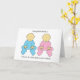 Bebês gêmeos de desenho animado, um rapaz e uma rapariga, com as palavras "Parabéns, és um Avô para gêmeos". A imagem tem um fundo branco nítido.