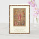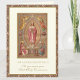 Este cartão religioso pode ser usado para a Primeira Comunhão Sagrada, mas pode ser personalizado para qualquer ocasião mudando o texto. Ele tem uma bela imagem católica tradicional de Jesus segurando o cálice e hospedeiro cercado por santos e anjos adorados.