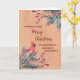 Feliz Natal para o neto e seu cartão de família com cor d'água rústica verde e padrão de papel cardeal e vintage.