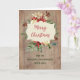 Feliz Natal para o vovô e a vovó com arranjo floral de aquarela e padrão de madeira rústica e verso atencioso.