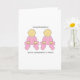 Bebês gêmeos, ambos em roupas cor-de-rosa, e as palavras "Parabéns, vocês são avós para gêmeos!"