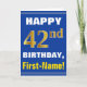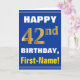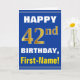 Cartão Azul, Azul, Faux Dourado 42º Aniversário com Cartã