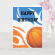 Perfeito por desejar ao fã de basquete um Feliz Aniversário. Um design de basquete com chamas brancas ao redor da bola com azul e laranja. Perfeito para apoiadores e fãs das equipes locais de basquetebol que têm o azul e o laranja como suas principais cores. Personalize com seu próprio texto para torná-lo exclusivo para você ou como presente. sgb01