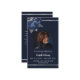 Um fundo azul escuro, uma falso armação prateada e espaço para sua foto. Decorado com flores azuis. Personalize e adicione nome, datas e texto.