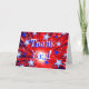 Um fogo de artifício explodindo num chá de estrelas azuis e brancas deslumbrantes contra um céu vermelho e azul. Cartão de saudação com um design personalizável vermelho, azul e branco para você personalizar com seu próprio texto, imagens e ideias. O texto pode ser facilmente alterado usando o modelo fornecido ou clique no botão 'Personalizar o texto' para fazer outras alterações. Criado com fotografias originais e técnicas digitais por Jess Perry.