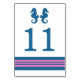 Cartão de Mesa Náutica de Casamento Elegante e clássico de Cavalo-Marinho com um par de cavalos-marinhos simples e um conjunto de faixas em azul e rosa-marinho escuro. Este cartão de mesa com tema de praia náutica pode ser facilmente personalizado com seus detalhes de casamento. Para obter mais opções de personalização, clique no botão Personalizar Ti.