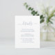 Forneça aos seus convidados detalhes importantes com este elegante cartão de cerimônia azul empoeirado e empoeirado, com uma fonte moderna de escrita. Itens correspondentes disponíveis.