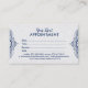 Vintage branco elegante, fundo de damascos florais com um lugar azul-marinho floral paisley mandala. Cartão de visita de compromisso completamente personalizável modelo.