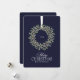 Um clássico cartão azul de Natal marinho com uma coroa festiva na frente. O ano pode ser incluído ou removido, e o texto permite o nome da sua própria família. No verso, você pode manter os desejos de feriado elegantes fornecidos ou substituí-los por sua própria mensagem pessoal. Um eterno de Feliz Natal para compartilhar alegria e calor nesta temporada de festas.