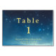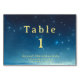 Cartão de mesa de Natal com estrelas de cor azul e dourada. Os suprimentos de festas de números da mesa de excelente para a sua mesa de Natal. Aumente sua mesa com placas de números de tabela personalizadas. Personalize o texto. Use a modelo para criar seu próprio cartão de número de mesa de Natal azul e dourado.