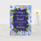 Cartão de aniversário para um amigo com flores azuis bonito e verso pensado.