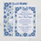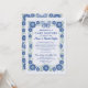 Este convite personalizado para chuveiro de cartões de aniversário é projetado para hospedar um chuveiro por correio, convidando familiares e amigos a enviar cartões de aniversário para um casal especial que celebra um aniversário de casamento marcante. O design desenhado à mão apresenta uma moldura de borda floral estilo Talavera inspirada no retro com uma borboleta detalhada no topo, criada em cores azuis bonitas, com uma área central espaçosa para texto personalizável para que você possa adicionar nomes, ano de aniversário, detalhes da festa, endereço de envio e instruções de quando e onde enviar os cartões. O verso do convite apresenta uma extensão coordenada da obra de arte floral para uma apresentação artística coesa. Ideal para aniversário de 25 anos, 40 anos, 50 anos de aniversário de ouro ou qualquer celebração marcante onde os entes queridos homenageiam o casal à distância, este convite personalizado para chuveiro de cartões de aniversário é perfeito para familiares distantes, celebrações virtuais, tributos surpresa de aniversário e projetos de memória, atraindo compradores que procuram convite para chuveiro de cartões de aniversário, convite para aniversário por correio, convite para celebração de aniversário marcante, convite para festa de envio de cartões, anúncio personalizado de aniversário e papelaria com borboleta