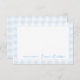 Elevem sua correspondência com nosso Cartões de agradecimentos de Papel Pessoal de Gingham Azul Bebê, exuando o charme do eterno e a sofisticação. Perfeito por expressar gratidão ou enviar notas pensativas, este conjunto de papelaria adiciona um toque de elegância a qualquer mensagem. Adorado com um padrão clássico de gingham azul-bebê, este cartões de agradecimentos emana uma sensação de nostalgia e calor. O cabeçalho "Da Mesa de" adiciona um toque personalizado, fazer que cada cartão se sinta como uma marca de manutenção. Impressos em estoque de cartão de alta qualidade, nossos cartões de agradecimento são projetados para impressionar com sua aparência e sentimento especiais. Cada cartão oferece amplo espaço para expressar sua gratidão ou transmitir seus sentimentos com graça. Seja usado para correspondência profissional ou pessoal, nosso Cartões de agradecimentos de Papel Pessoal de Gingham Azul Bebê deixa uma impressão duradoura e faz suas mensagens se destacarem com estilo de eterno e sofisticação.