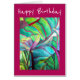 Aniversário tropical com pintura de aquarela original de folhas folícolas tropicais "Blue Hawaii", palmeiras tropicais. Esta arte original de cor brilhante apresenta cores verdes, azuis, roxas e burgundy. Folha e folhagem.