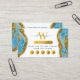 Um desenho abstrato de tinta azul-aquática mácula de cor dourada. Este elegante design de mármore líquido que combina tons dourados cria uma sofisticada peça de abstrato. Uma maneira simples e profissional de apresentar seu negócio. Ícones das mídias sociais incluídos na design deste cartão de visita para você usar. Um cartão de fidelidade à folha de ouro de mármore azul ideal / design de cartão de visita para um salão de beleza, cabeleireiro cabeleireiro, maquiador, cosmetólogo etc. Personalize seus detalhes para criar seu próprio cartão de visita exclusivo.