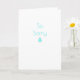 Cartão de condolências com um design minimalista com lágrima azul turquesa e uma fonte estilo Art Déco que diz 'Tão triste'. Dentro do cartão a mensagem diz 'Sinto muito pela sua perda'. Personalize facilmente este cartão editando o texto do modelo. Cartão simples e elegante com fundo branco brilhante. Obrigado por ver meus designs.