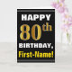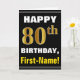 Cartão Azul, Preto, Faux Dourado 80 Aniversário com Cartã