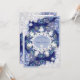 Floco de neve com o desenho de uma janela de vidro manchado de uma velha igreja europeia: uma janela rosa, com toques de uma grande variedade de cores, incluindo tons de azul, sobre um fundo azul marinho. Inlay de rochas azuis-claras (desenhada). Para um padrão de inverno antigo. Este motivo também está disponível em vermelho cardeal em minhas coleções de "rosa vermelho cardeal".