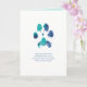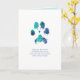 Impressão de pata azul turquesa e azul com coração no centro e “Que você encontre mais força a cada nascer do sol, e mais paz a cada pôr do sol” abaixo em azul.