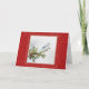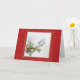 Cartão de Natal com uma gaio-azul num galho de pinheiro com um visual de brilho vermelho.