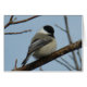 Placa de Chickadee com proteção preta. Estas pequenas aves duras em suas grossas casacos de inverno de cinzentos e negros parecem impermeáveis a temperaturas de inverno rígidas.