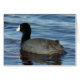 Cartão do Galeirão-comum. Os tons cinza e preto dessas pequenas aves aquáticas contrastam com seus bicos brancos ou amarelos. São muito comuns em lagoas e pântanos da pradaria.