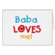 Baba me ama T-shirts, cartas, adesivos, bolsas de fôlego, e mais com texto vermelho, amarelo e azul colorido e design cardíaca. Estes Baba me ama roupa e os presentes farão a baba sorrir!