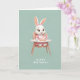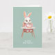 Cartão Baby Bunny Girl in High Chair 1st Birthday Cake