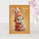 Cartão Baby Bunny in Cozy Red Bonnet Thinking of You