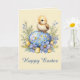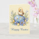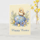 Cartão Baby Chick Happy Easter Egg Blue Yellow Flowers