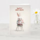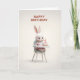 Cartão Baby Girl Bunny in High Chair With 1st BDay Cake