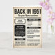 Cartão Back in 1951, 75th Birthday Fun Facts Card