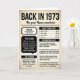 Celebrate a birthday with a nostalgic look back at 1973 — the year it all began. This personalized birthday card features fun facts and highlights from 1973, including 70s slang, what was in style, and cost-of-living facts, all presented in a clean, timeless design.