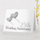 Carteira extra grande de aniversário de casamento da 25 branca com balões em forma de coração. Cada balão pode ser personalizado para os nomes do casal feliz e o dentro de mensagens também pode ser personalizado. O cartão perfeito para um marido e mulher comemorando seu aniversário de casamento de prata. Também estão disponíveis convites neste na moda e no design contemporâneo.