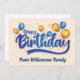 Cartão Balão Dourado e azul, feliz aniversário