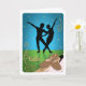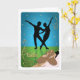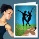 Celebre a alegria de dançar balé com este cartão de qualquer idade, de qualquer ocasião. Na silhueta está um pas de deux iluminado de trás com luzes azuis, estrelas e faíscas. O chão do palco é um brilho verde com estrelas e faíscas. O núcleo dos exercícios de balé é feito na barreira. Com calçados balés marrons, você está pronto para a aula. Os ornamentos Dourados decoram os cantos do cartão com a palavra balé em tipografia de script. Dentro: Vazio para qualquer ocasião.