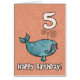 Baleia do feliz aniversario - 5 anos de baleia de humpback bonito velha em um cartão específico à idade do aniversário. Texto interno: "Esperança você tem uma baleia de um momento!"