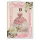Uma coleção de imagens vintage composta por uma bela bailarina, um quadro de ornamentado e rosas brancas no cheio floresceram num fundo cor-de-rosa macio.