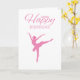 Cartão de aniversário clássico com uma silhueta cor-de-rosa de bailarina com o texto "Feliz Aniversário" - excelente para raparigas graciosas que adoram dançar, balé. Você pode editar as cores de todos os elementos de design / dentro de fundo /fora.