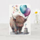 Cartão Balões de Aniversário Aquarela de Vaca das Terras