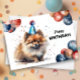 Cartão Balões de Cachorro da Pomerânia e Chapéu do Partid
