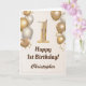 Cartão Balões Dourados do primeiro aniversario e Noite de