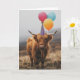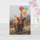 Cartão Baloões de Aniversário da Vaca das Terras Altas