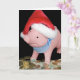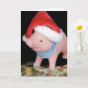 Banco cor-de-rosa, cor-de-rosa, com chapéu de Papai Noel vermelho e branco, em moedas de ouro, para o Natal