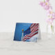 Foto por Janet Shingleton da bandeira americana que acena na luz do sol contra um céu azul brilhante. É imprimido na imagem um trecho dos poemas líricos "que você é uma bandeira velha grande" por George M. Cohan, "e para sempre na paz pode você acenar…" O cartão está vazio no interior para a personalização. Exemplos: Dia dos pais feliz, parabéns, pensando de você, faltando o, obrigado para seu serviço, feliz 4o julho, dia de veteranos feliz, Memorial Day feliz, dia de forças armadas feliz.