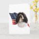 EUA! América! Grito seu orgulho com este fundo patriótico da bandeira impressionante com esta raça Havanese do cão de AKC no primeiro plano. Mostre seu orgulho com este design em um t-shirt, em uma caneca, e em um muita, muito mais!