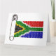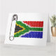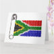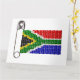 Um alfinete de segurança com um broche tradicional de zulu, que representa a bandeira sul-africana sobre um fundo isolado