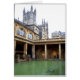Uma visita aos banhos romanos históricos com a catedral do banho no fundo. Cidade histórica do banho, Inglaterra.