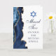 O elegante azul marinho e ágata dourada decora a lateral deste cartão de congratulações moderno para festa de Bar Mitzvah. Mazel Tov! Personalize-o sob a Estrela de Davi. Cartão de felicitações personalizado perfeito para uma família judia chic e elegante que celebra um menino sendo chamado ao Torá.