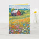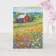 Arte impressionista do velho celeiro e flor silvestre para o aniversário geral. O texto pode ser alterado.